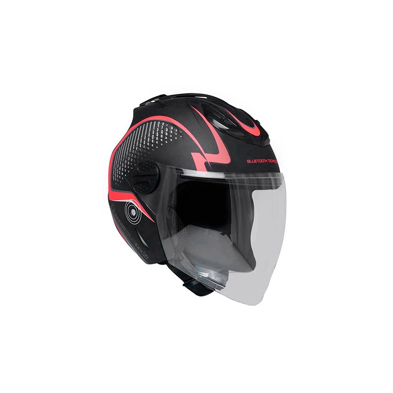 Casco para motociclista abierto con bluetooth exoskeleton Ventec Negro / Rojo CA1 Talla L